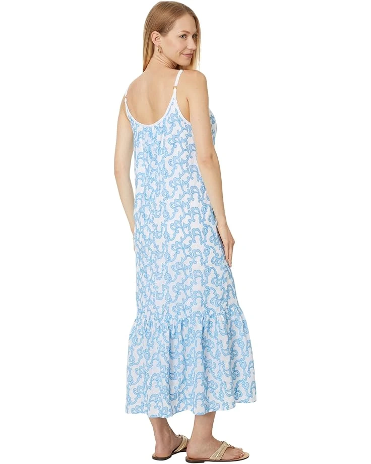 - Stay cool and comfortable all day wearing the Lilly Pulitzer® Amerie Embroidered Cotton dress. This printed dress is styled with a scoop neckline, a tall ruffle at the hem, and a sleeveless design. The cotton fabric of the dress takes your comfort to the next level. Make your style statement by wearing this cotton dress.