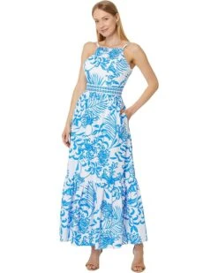 - Dazzle in the eye-catching printed details of the Lilly Pulitzer® Charlese Cotton Halter Maxi Dress. The ankle-length maxi dress features a fit-and-flare silhouette, halter neckline, adjustable straps, tie-back bodice detail, tall ruffle at skirt hem, and side seam pockets.