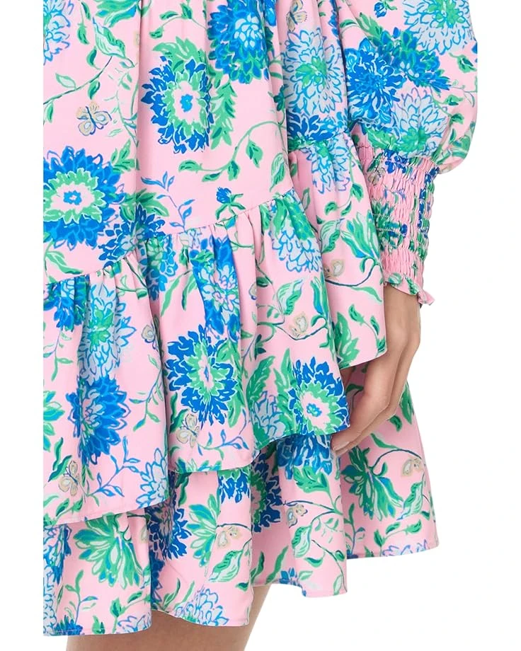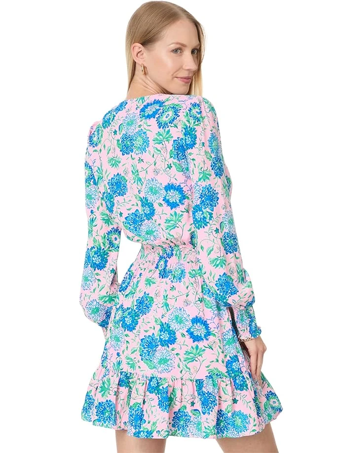 - Enliven your look and enjoy comfort from day to night wearing the Lilly Pulitzer® Cristiana Long Sleeve Stretch Dress. Crafted in a lightweight and airy wrinkle-resistant Stretch Lileeze® fabric, this floral-printed dress looks impressive with its surplice V-neckline teamed with long sleeves with smocking at shoulder, waist, and cuffs and a flared skirt with asymmetrical ruffles.