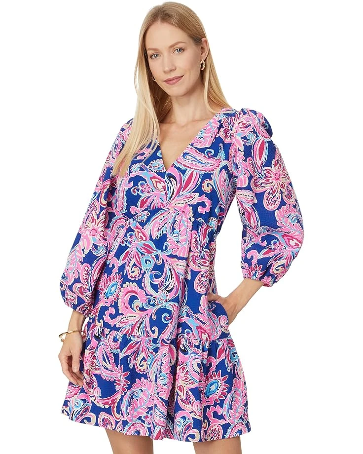 - Featuring the allover printed pattern, the Lilly Pulitzer® Deacon 3/4 Sleeve V-Neck dress is sure to give you a polished look for your next brunch date. It has an empire waist silhouette and side pockets for added comfort.