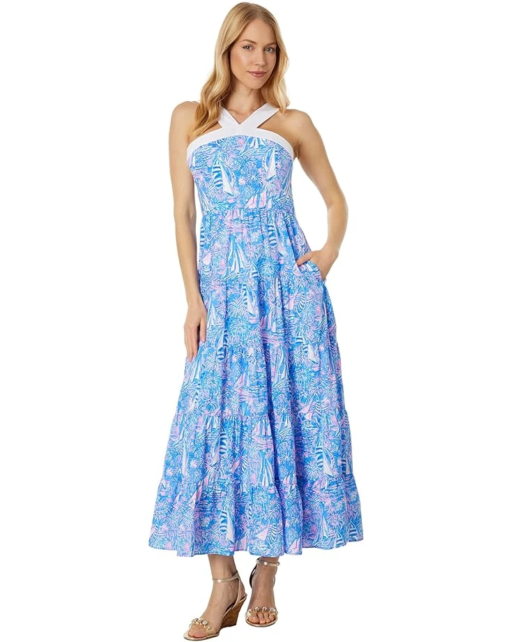- Style your warm weather look wearing the Lilly Pulitzer® Jenette Cotton Halter Maxi Dress.