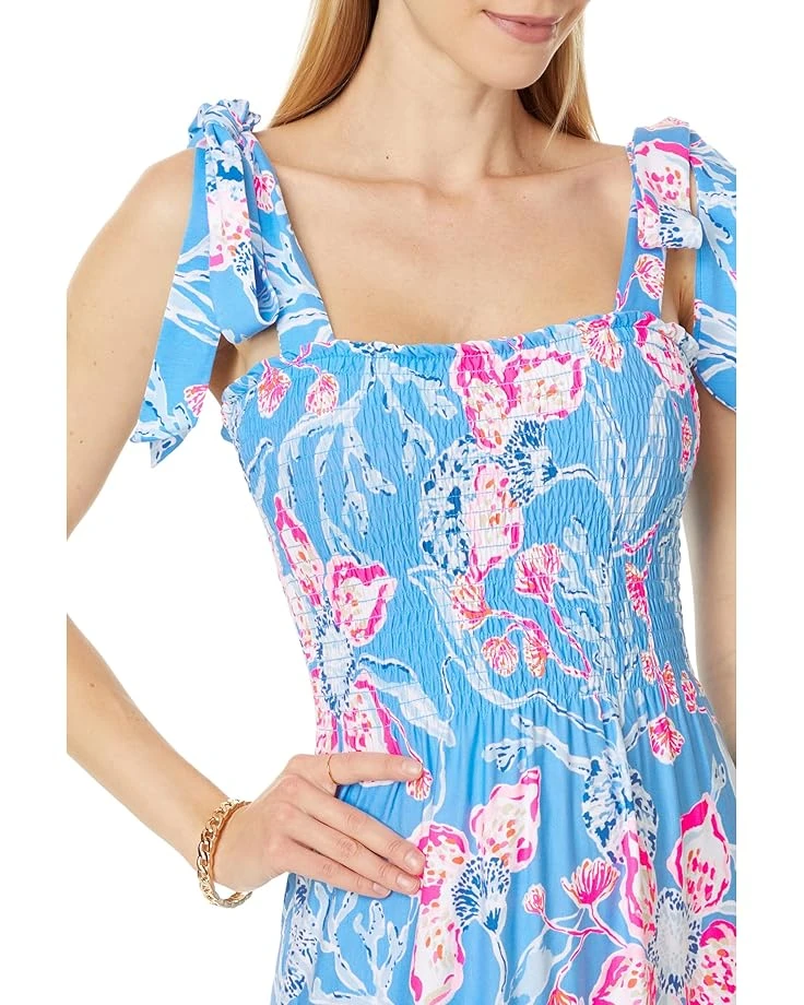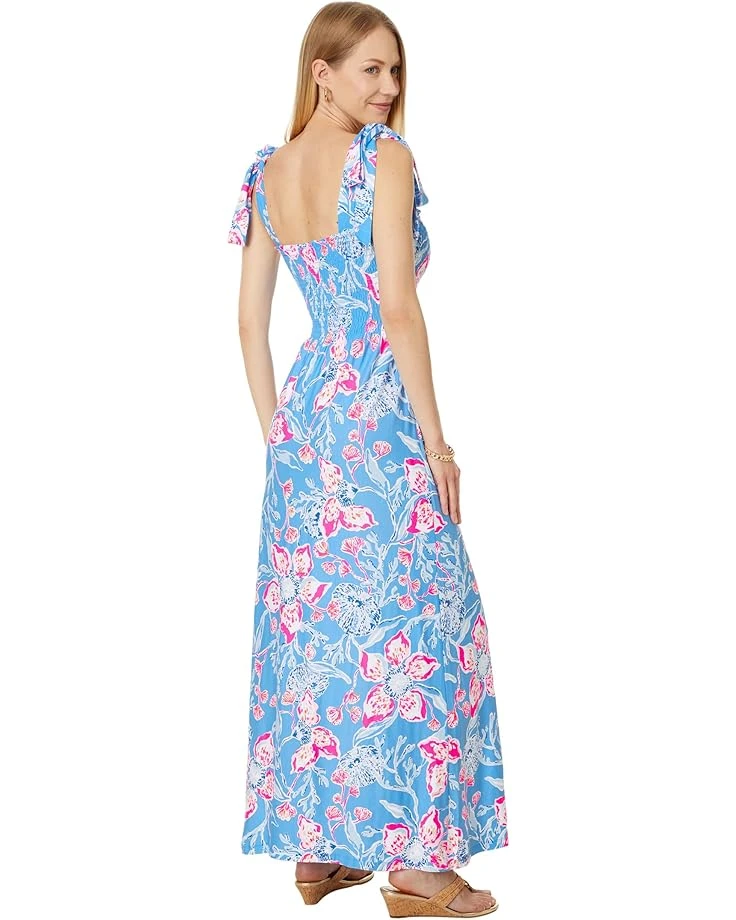- Add a fun and colorful twist to your everyday looks and styles wearing the Lilly Pulitzer® Kailua Smocked Maxi Dress. The smocked bodice and adjustable tie straps offer a flattering fit. This printed dress has a sleeveless style, a square neckline, and a straight hem. Flaunt your great style and curves wearing this ankle-length dress.