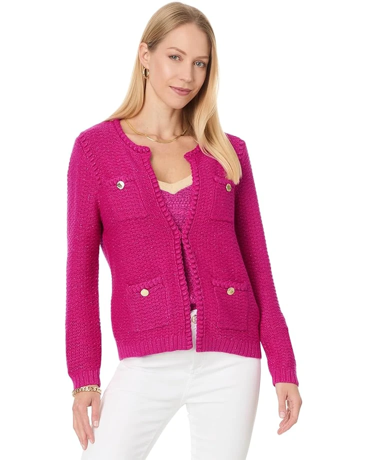 - Flaunt a chic style and keep yourself cozy in the Lilly Pulitzer® Kenton Cardigan. The cardigan features a crew neck, long sleeves with ribbed cuffs, four patch pockets on the front with button detail, bobble trim detail, and a single hook and eye closure at center-front.