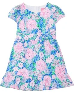 - Make your child’s big day even better by making them wear the beautiful Lilly Pulitzer® Kids Alexandra Dress. The cute floral printed dress has puffed short sleeves and bow detailing. With a flounced skirt and a convenient back zipper closure, the dress will become her favorite. The knee-length dress also has a crew neck, and side seam pockets for added convenience.