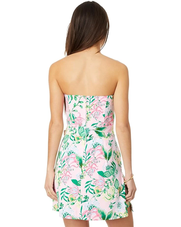 - Add a colorful twist to your everyday looks and styles by wearing the Lilly Pulitzer® Kylo Strapless Skirted Romper. The skirted design in satin back crepe offers a chic look. This printed romper dress is designed with a sweetheart neckline and sleeveless style that keeps you cool and comfortable all day. One of the highlights of this romper is its waist-defining sash with a bow that ensures a flattering fit. The side seams of the dress offer durability. Get ready for an event or party by wearing this floral romper.