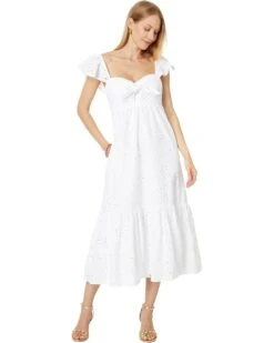 - Finesse your look with a hint of graceful charm as you wear the Lilly Pulitzer® Lantana Flutter Sleeve Eyelet Midi Dress. It features a sweetheart neckline with bodice cups, tie-front detail, short flutter sleeves, and midi silhouette.