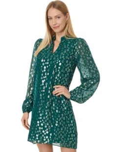 - The Lilly Pulitzer® Lauralyn Silk Dress offers an easy fit A-line silhouette and notch V-neckline with stand collar. It has long sleeves with elastic cuffs.