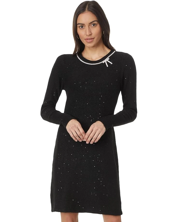- Get ready to dazzle on your chilly night outings donning the Lilly Pulitzer® Morgen Sequin Sweater Dress which is constructed in a soft and fluffy fabric with glittery sequins dusted all over. Tailored in a straight fit, the dress displays a crew neck perfectly paired with long sleeves and an eye-catching trio of rhinestone buttons at the shoulder.