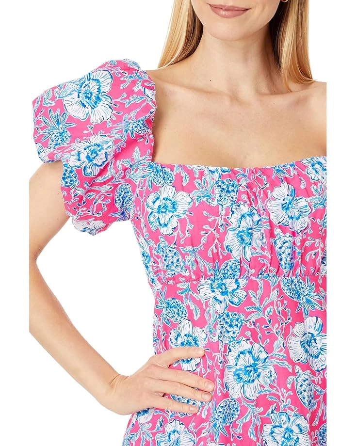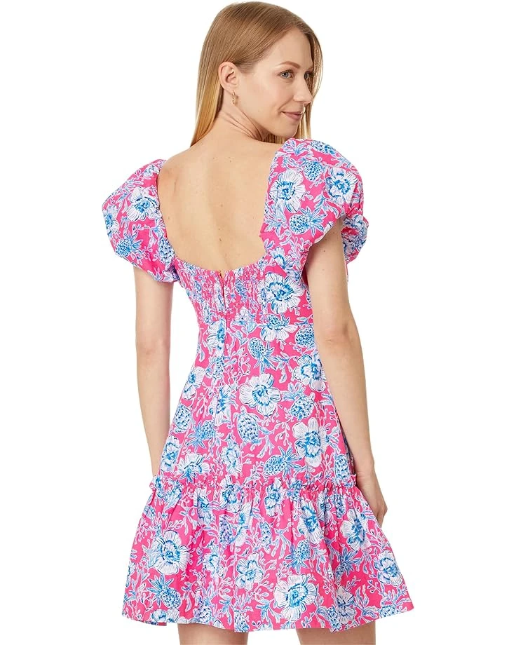 - Look perfectly unique as you embrace floral bliss and colorful vibrancy of the Lilly Pulitzer® Nastia Short Sleeve Cotto Dress. It features a square neckline, short bubble sleeves, smocked back panel, zippered center back closure, and ruched bodice for a stunning fit-and-flare fit.